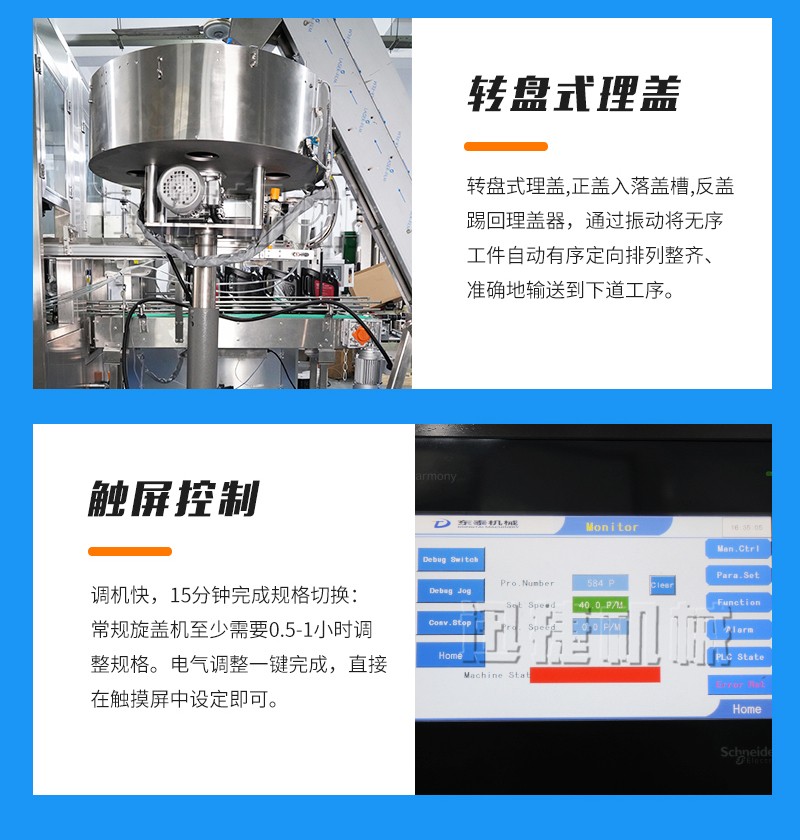 7、調機快,15分鐘完成規格切換:常規旋蓋機至少需要0.5-1小時調整規格。