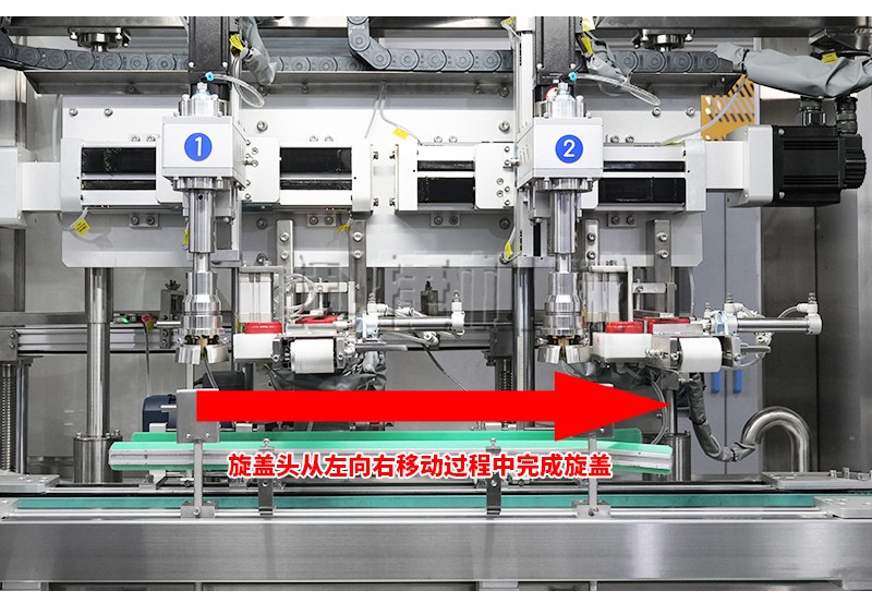 2、品質高:跟隨式旋蓋,旋蓋過程不停頓,不晃液,不污染瓶口、瓶身及輸送帶,確