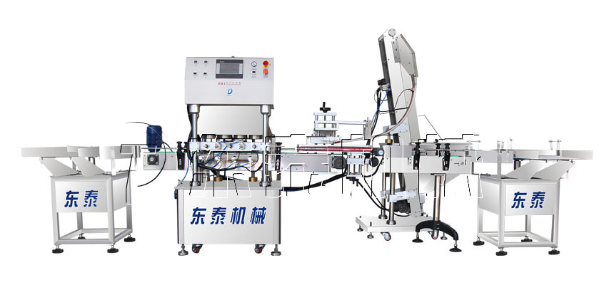 旋蓋部分:機(jī)器采用自動(dòng)下蓋方式,無(wú)需過(guò)多人工參與,自動(dòng)下蓋抽真空旋蓋,整機(jī)灌裝包裝流程一氣呵成。