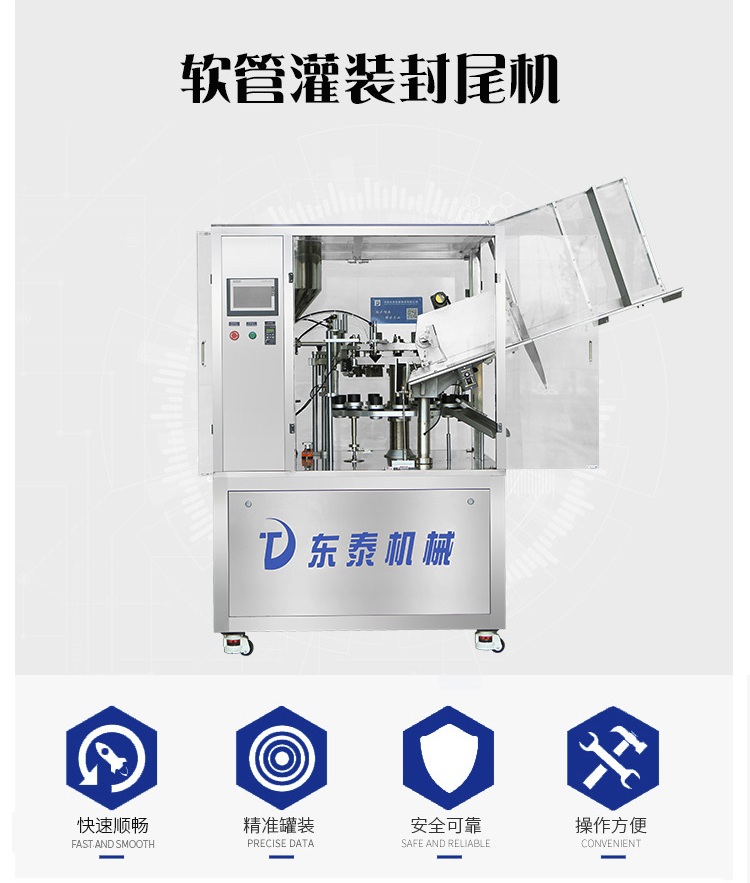 軟管灌裝封尾機適用于醫藥、食品、化妝品、日用化工用品等行業的塑管、鋁塑復合管灌裝封尾。軟管灌裝封尾機可將各種糊狀